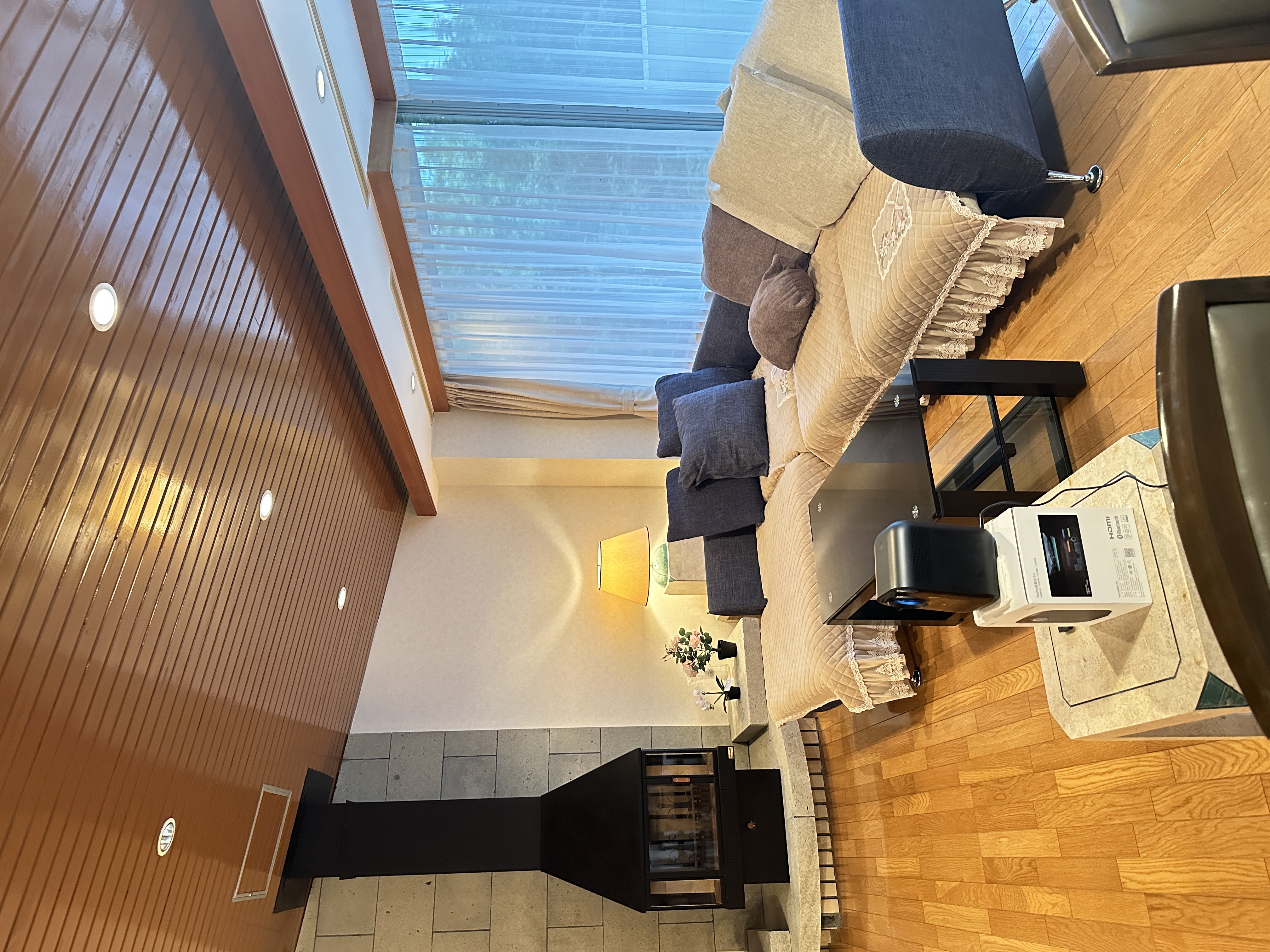 The fully air-conditioned interior includes three bedrooms, a living room, and a well-equipped kitchen with a refrigerator and electric kettle. There are also two bathrooms with shower-equipped hot spring baths, both featuring bathtubs. Complimentary bath amenities, towels, and bed linens are provided for your comfort.