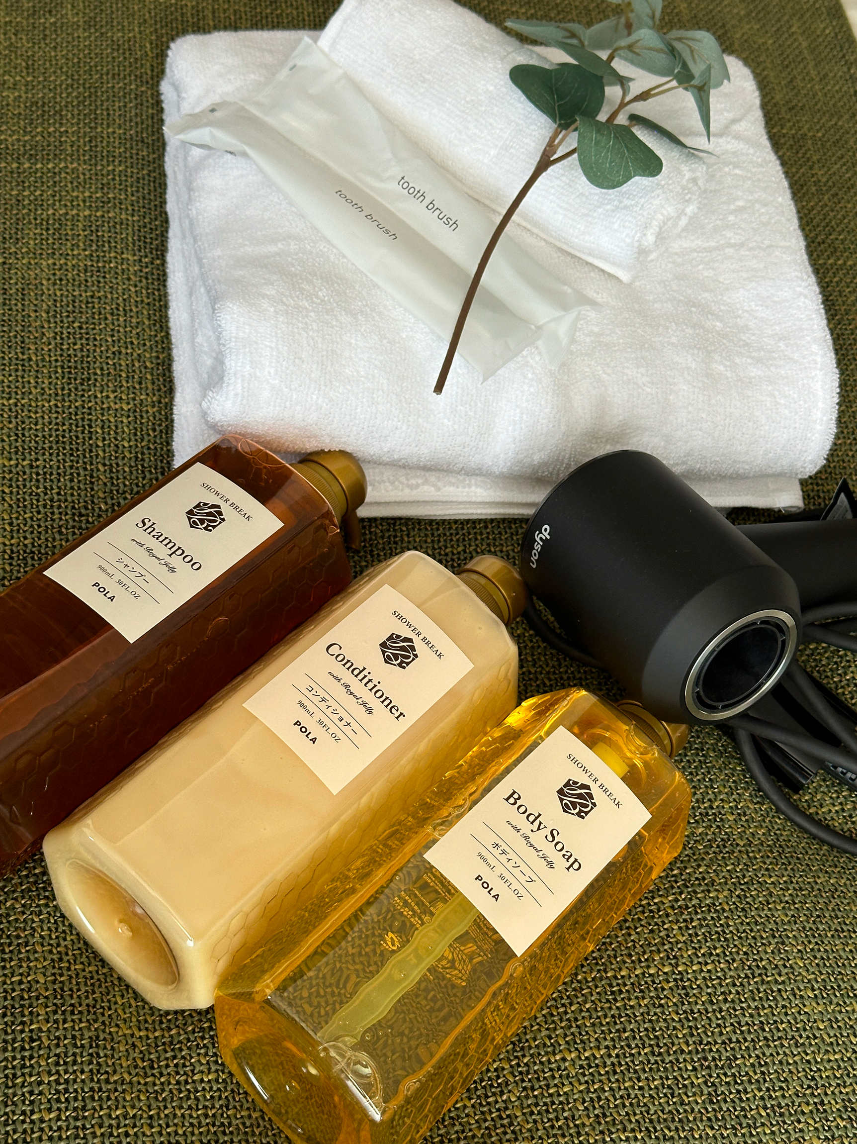 Toiletries (body wash, shampoo, conditioner)